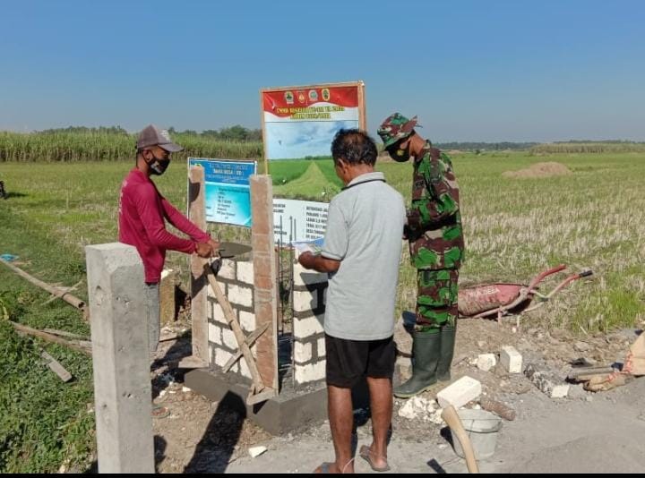 Pati- Dengan berjalannya waktu pelaksanaan TMMD reguler ke 111 Kodim 0718/Pati di Dukuh Pandahan Desa Tamansari Kecamatan Jaken Kabupaten Pati, pembangunan untuk prasasti TMMD sudah mulai dikerjakn oleh Tim Satgas TMMD dan warga desa.