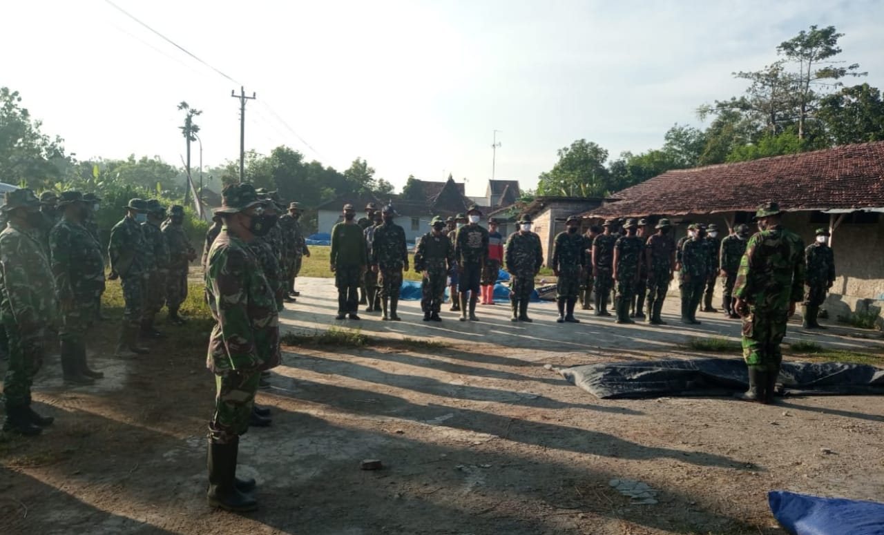 Pati-Sebelum berangkat menuju sasaran masing-masing, Satgas TMMD regular 111 Kodim Pati melaksanakan apel pagi dilanjutkan berdoa agar diberikan kelancaran dalam kegiatan. Sabtu,(19/06/2021).