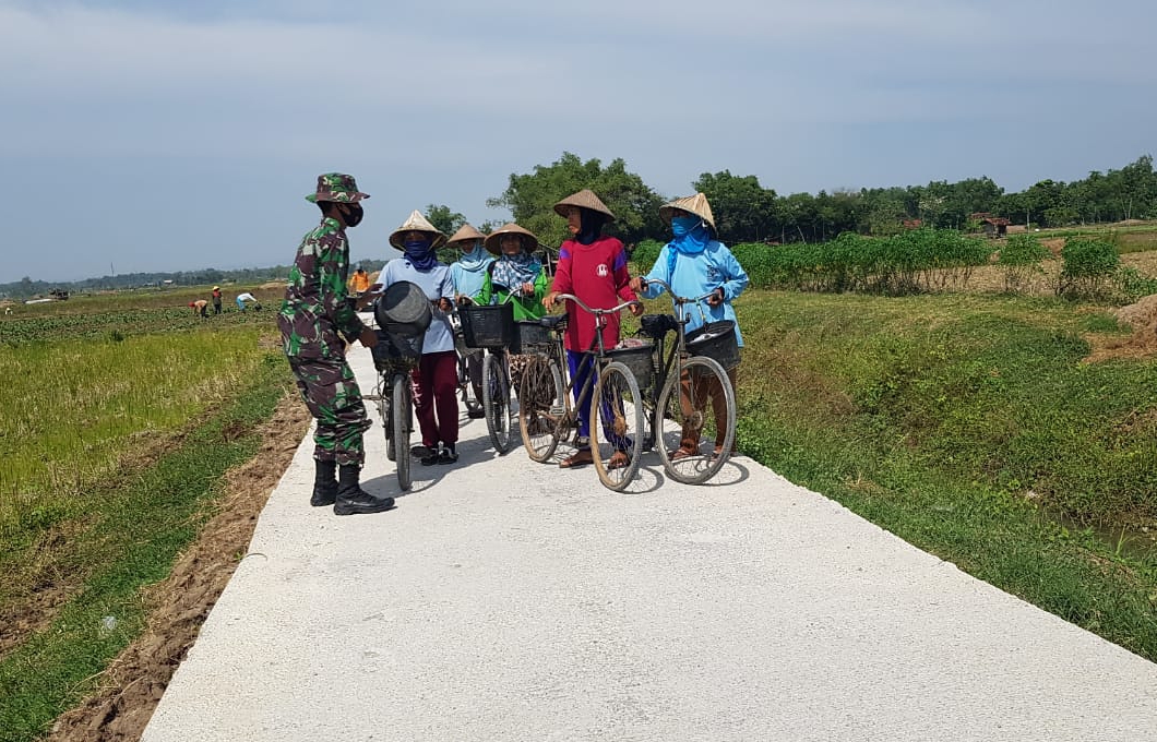 Pati – Setelah diresmikannya jalan pertanian dan penghubung Desa Tamansari ke Desa Sumberarum telah diserahkan kepada Kepala desa, jalan baru yang dikerjakan melalui program TNI Manunggal Membangun Desa ( TMMD ) Reguler ke-111 Kodim 0718/Pati dan elemen masyarakat Desa Tamansari, Kecamatan Jaken, Kabupaten Pati, Jawa tengah, emak-emak di desa setempat sudah mulai menikmatinya ketika hendak berangkat kerja di sawah.
