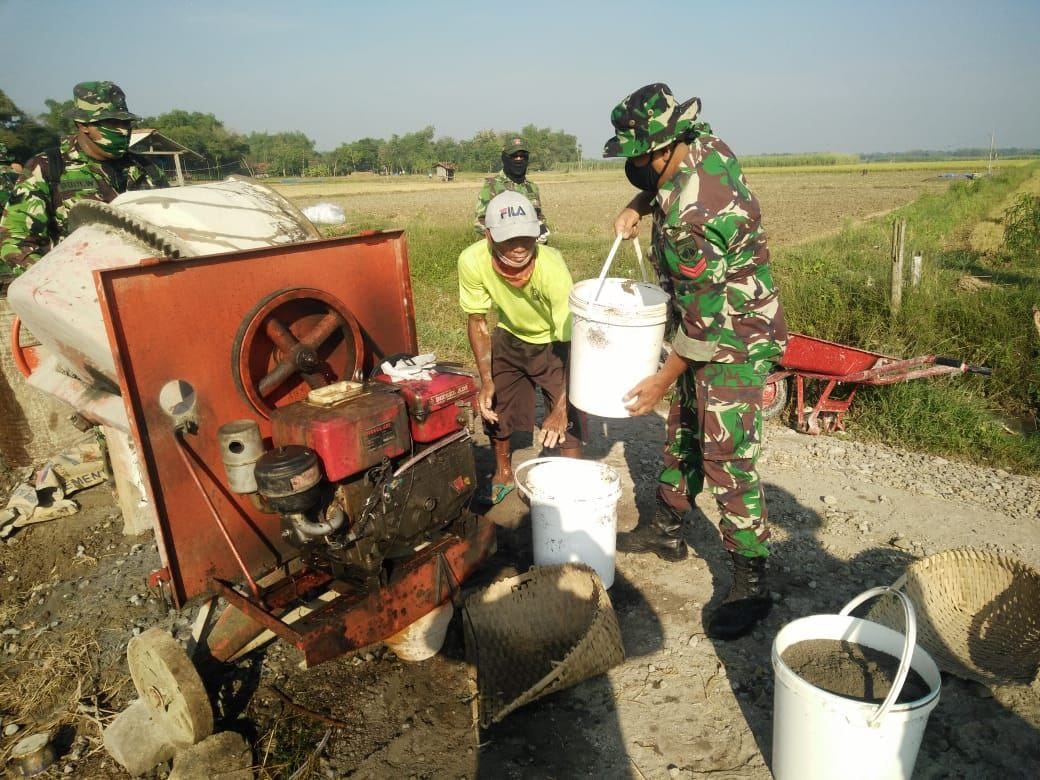 Pati – Dengan pelaksanaan TNI Manunggal Membangun Desa (TMMD) yang ada di Desa Tamansari, Kecamatan Jaken, Kabupaten Pati ini, baik para anggota satgas dan juga warga Desa Tamansari selalu melaksanakan gotong royong dalam melaksanakan pekerjaan.