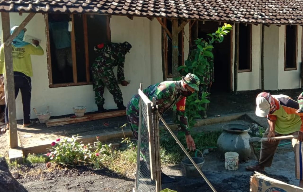 Pati-Rehab rumah milik Asmuri salah satu warga desa Tamansari yang mendapat bantuan dalam rehab rumah tidak layak huni (RTLH) TMMD reg.111 Kodim Pati sudah mencapai 80 %. Jumat,(18/06/2021).