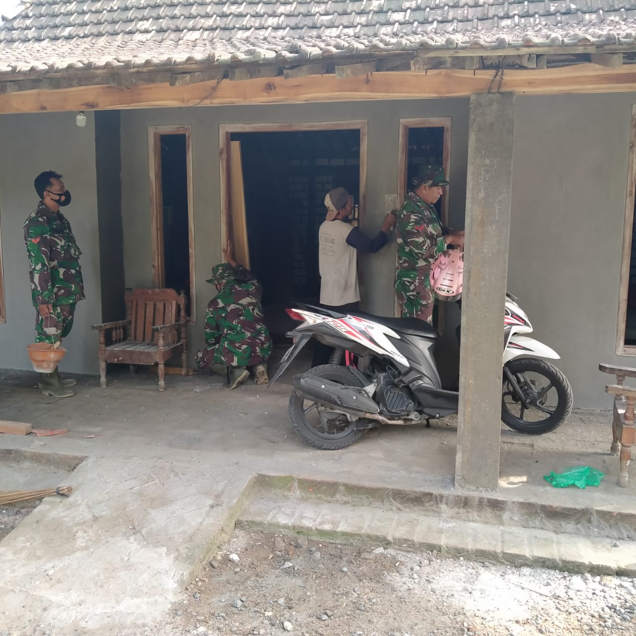 Di rumah Santosa(55) Dukuh pandahan Desa Tamansari tersebut, terlihat anggota TNI satuan tugas TNI Manunggal Membangun Desa (TMMD) sedang disibukkan dengan kegiatan perapihan plester dan pemasangan kusen pintu dan jendela.
