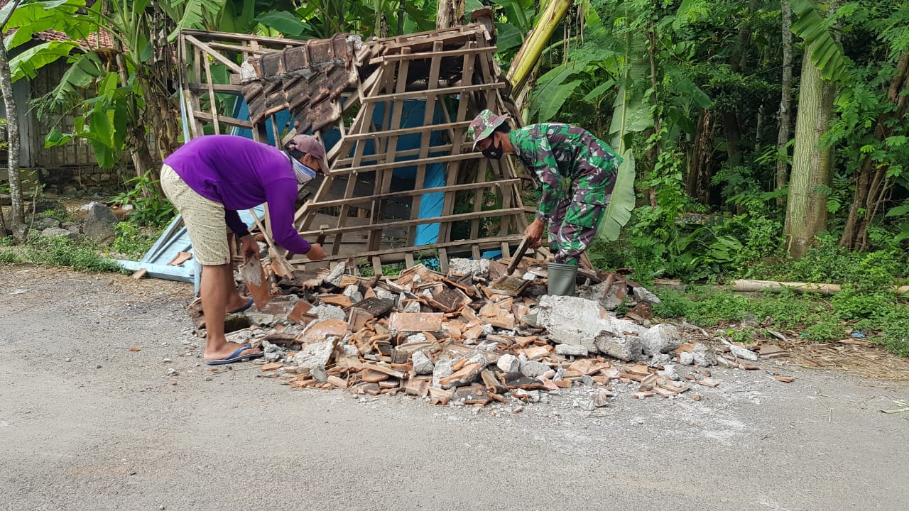 ” Gazebo yang roboh ini untuk sementara waktu dibersihkan dan disingkirkan agar tidak berserakan. Terimakasih banyak pak TNI yang hari ini disela kesibukannya menyempatkan membantu kami membersihkan runtuhan gazebo yang berserakan,” ungkapnya.