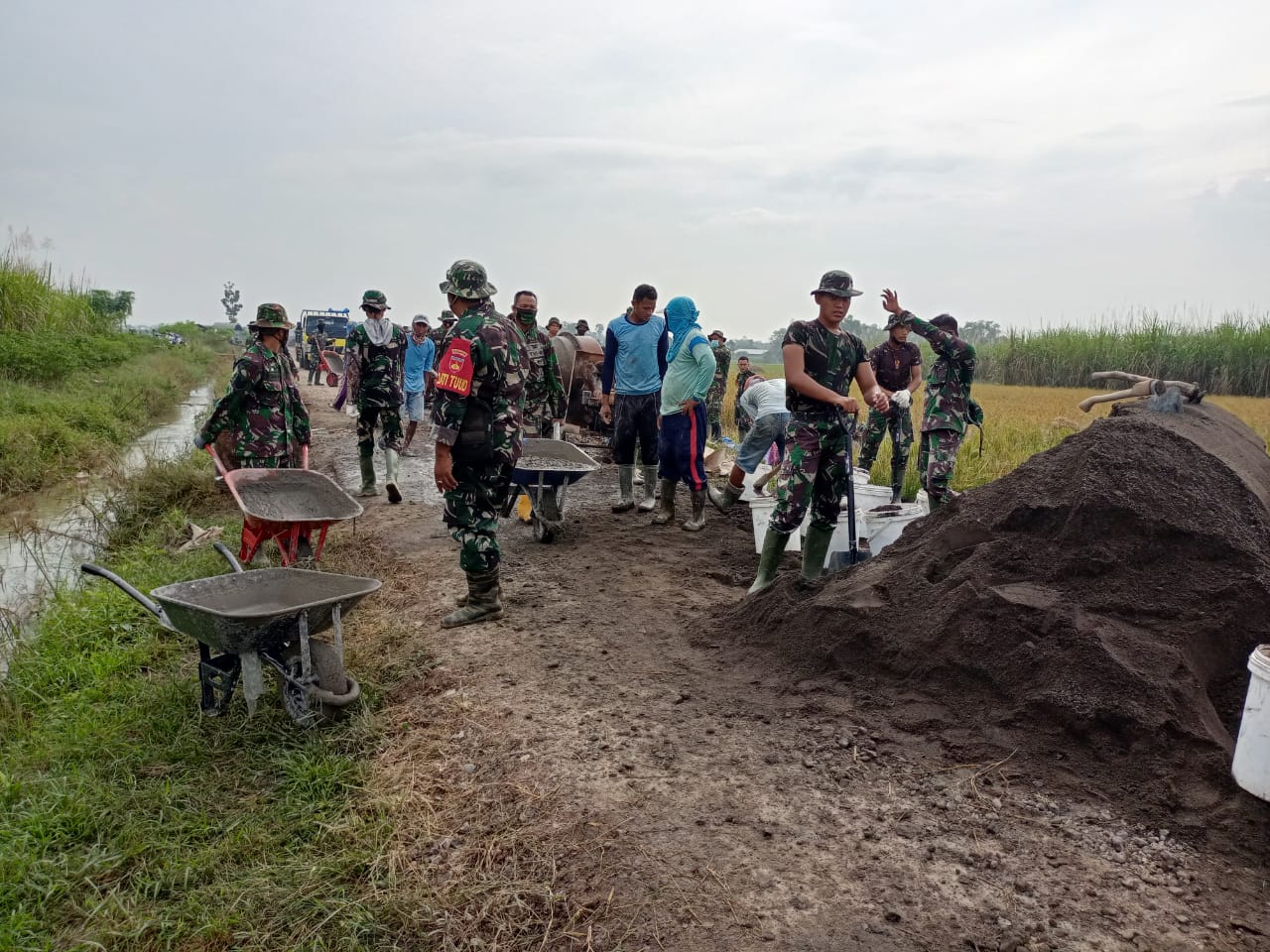 Semenjak pertengahan bulan di bulan juni lalu, terlihat begitu banyak orang yang sedang berkumpul dan berkegiatan setiap harinya dijalan areal pertanian di desa tersebut. Mereka adalah anggota satgas TNI dan warga desa.