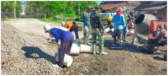 “Kita dalam hal ini Anggota Satgas TMMD beserta Masyarakat melaksanakan Pengecoran jalan dengan di bantu alat molen dan angkong untuk pendistribusian bahan cornya dan melakukan dengan cara bahu membahu dan gotong royong,”ujar Puryono”.