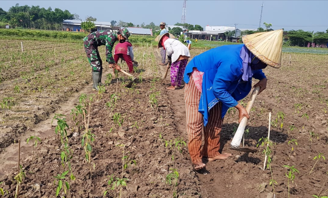 Kegiatan ini dilakukan TNI Satgas TMMD Reguler Kodim Pati sebagai wujud kepedulian terhadap warga masyarakat dengan kesulitan yang sedang mereka alami. Seperti kali ini Sukarji sedang membantu ibu-ibu yang sedang bekerja dilahan kebun cabai milik Bapak Sukardi warga Dukuh Kemiri, Desa Tamansari, Kecamatan Jaken.