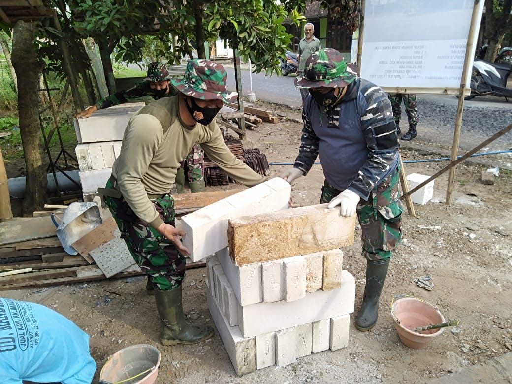 Pati – Dalam berbagai perhitungan, memang akhirnya diputuskan menggunakan bata hebel untuk memasang dinding semua RTLH yang direhab di gelaran TMMD Tamansari. Selain cepat, juga dinilai mempunyai banyak keuntungan, jelas Babinsa Tamansari, Sertu Sutrisno. Ditambahkan, di perehaban rumah Bu Sripi dindingnya juga menggunakan bata hebel. 22/06/2021.