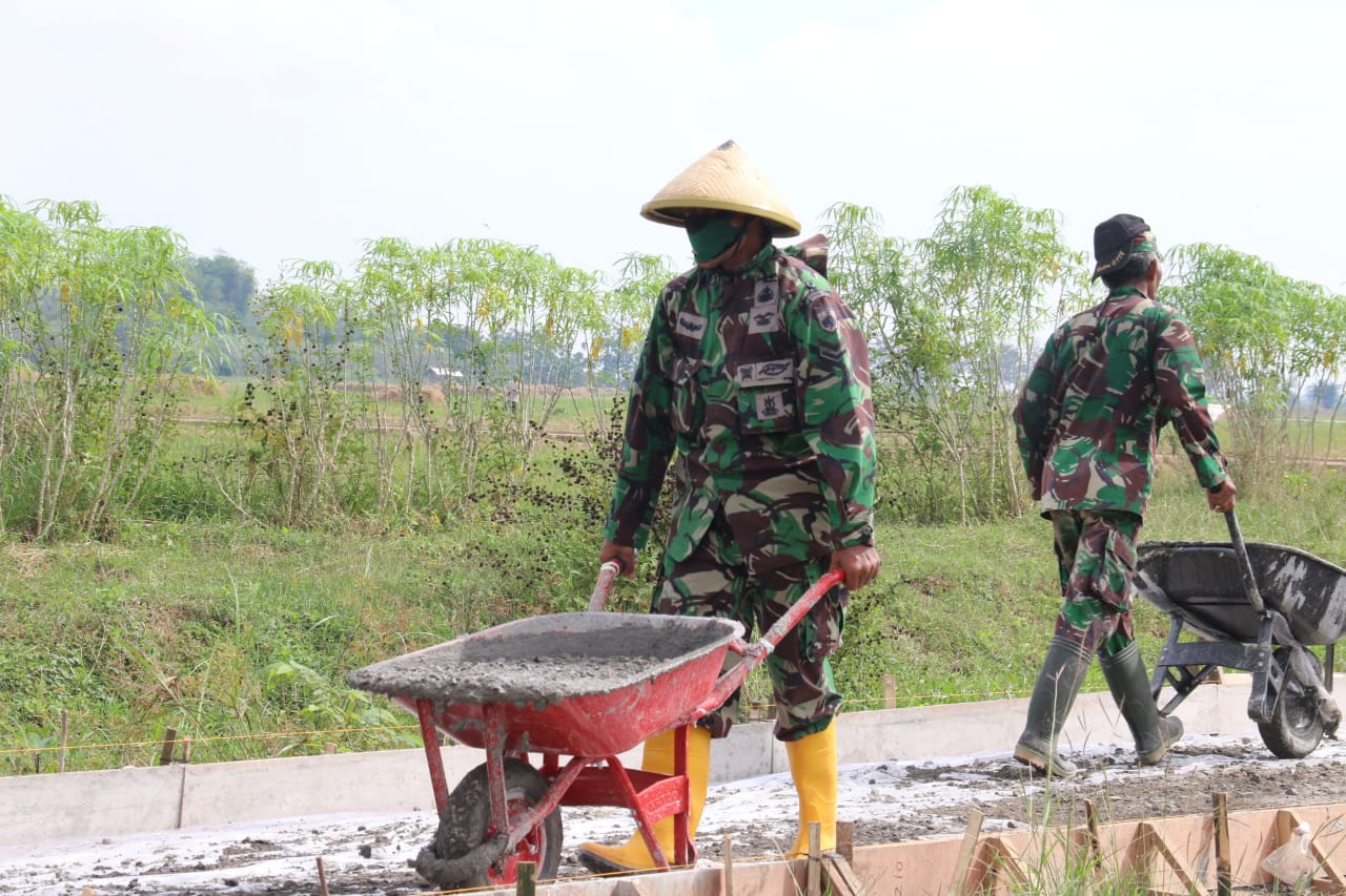 “Bapak-bapak anggota TNI saya menilai semangatnya luar biasa, mulai dari pagi hingga petang terus bekerja mengejar target yang telah ditentukan,”kata Gus Amin,ST Kades Tamansari.