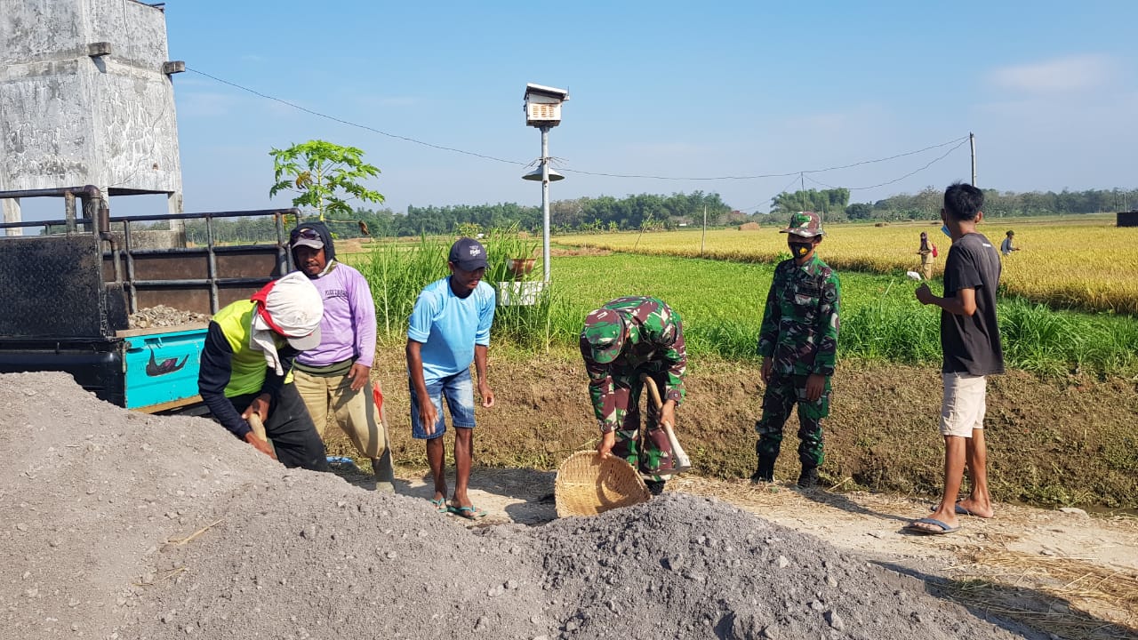 Sementara itu dikatakan oleh Danramil 16/Jaken Kapten Kav Budi Karyadi selaku Komandan SSK TMMD, bahwa proses betonisasi jalan mempunyai beberapa tahapan, pada saat pra TMMD telah dilaksanakan awal pekerjaan dengan perataan permukaan jalan.