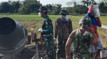 Semangat yang luar biasa di tunjukan anggota Satgas TMMD Reguler ke-111 Kodim 0718/ Pati, di Desa Tamansari,Kecamatan Jaken, Kabupaten Pati melanjutkan pekerjaan baik fisik maupun non fisik.