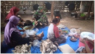 Seperti halnya yang di kerjakan di rumah bapak jamal ibu ibu berkumpul untuk memasak makanan untuk para pekerja dalam hal ini TNI beserta warga masyarakat yang tergabung dalam Program TMMD. Ibarat kata Kalau sampai dapur umum tidak masak di pastikan para pekerja di lapangan tidak dapat makan .Menyadari bahwa makanan sangat memegang peranan penting Tentu pelaksanaanya juga benar benar sungguh sungguh perlu supaya tidak mengecewakan bagi para pekerja di lapangan.