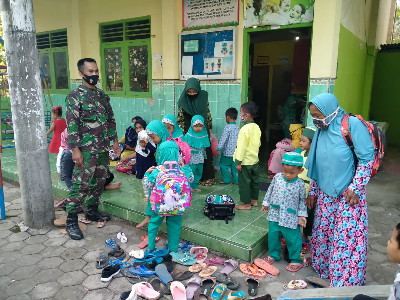 Pati- Satgas TMMD ke 111 Kodim 0718/Pati galakan komunikasi sosial (Komsos) sampai ke Taman kanak-kanak di Desa Tamansari, Kecamatan Jaken, Kabupaten Pati. Senin,(14/06/2021).