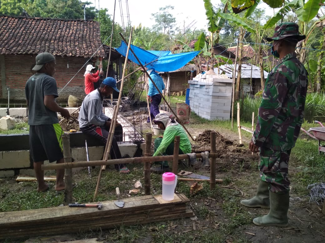 Pati – Pra TMMD ke-111 Kodim Pati di Desa Tamansari, Kecamatan Jaken, Kabupaten Pati terus berjalan terutama pembangunan sasaran fisik. Seperti pembangunan Rumah Tidak Layak Huni milik Slamet (35) yang dikerjakan hari ini di Dusun Kemiri, Desa Tamansari, Kecamatan Jaken, Kamis (10/6/2021).