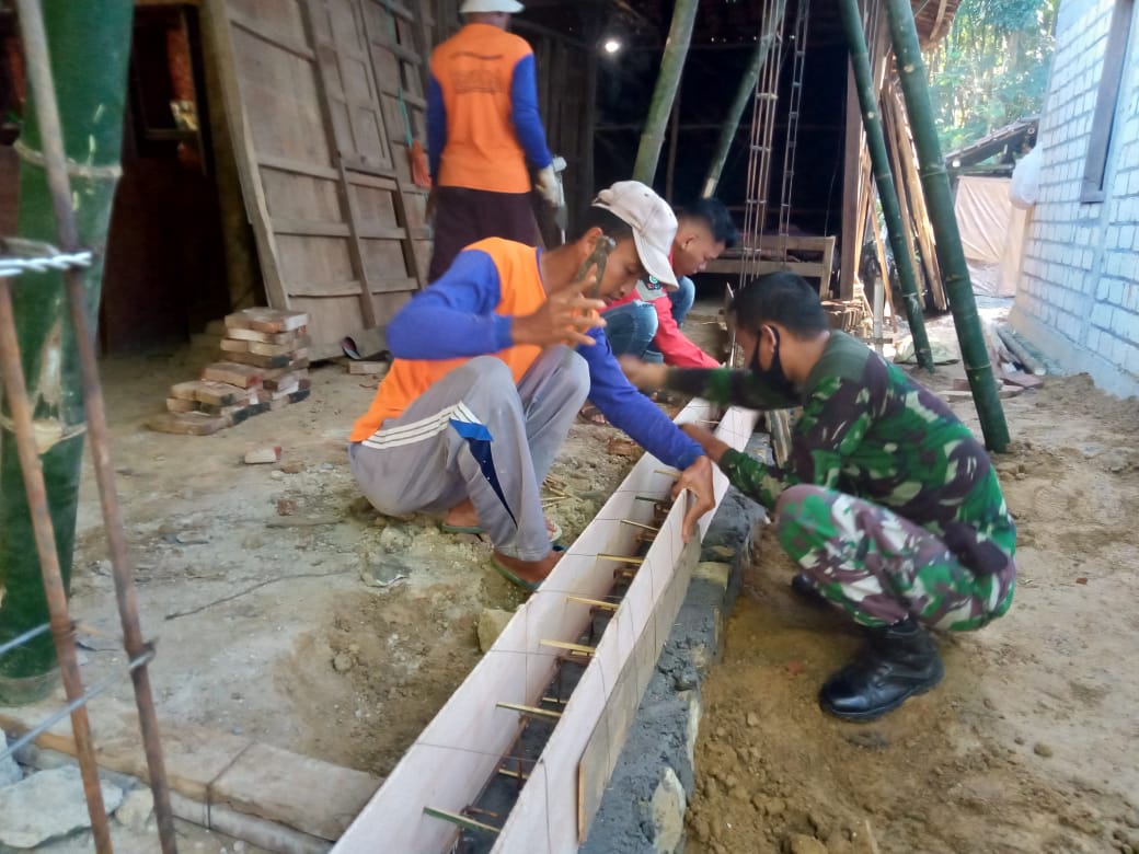 Pati-Melanjutkan rehab rumah tidak layak huni (RTLH) milik Sripi (52) masih dikerjakan oleh para Marinir yang tergabung dalam satgas TMMD.Senin,(21/06/2021).