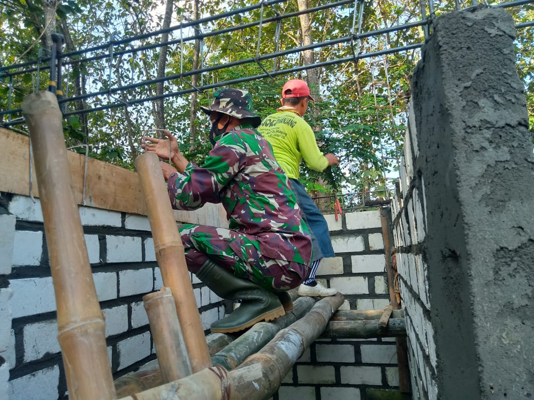 “Dirumah Pak Sunarto ini sudah mencapai 50 % hari ini kita pasang ring besi selanjutnya kita cor agar semakin kuat mengingat struktur tanah di desa Tamansari memang termasuk rawan retak,”kata Pelda Mardiyono.