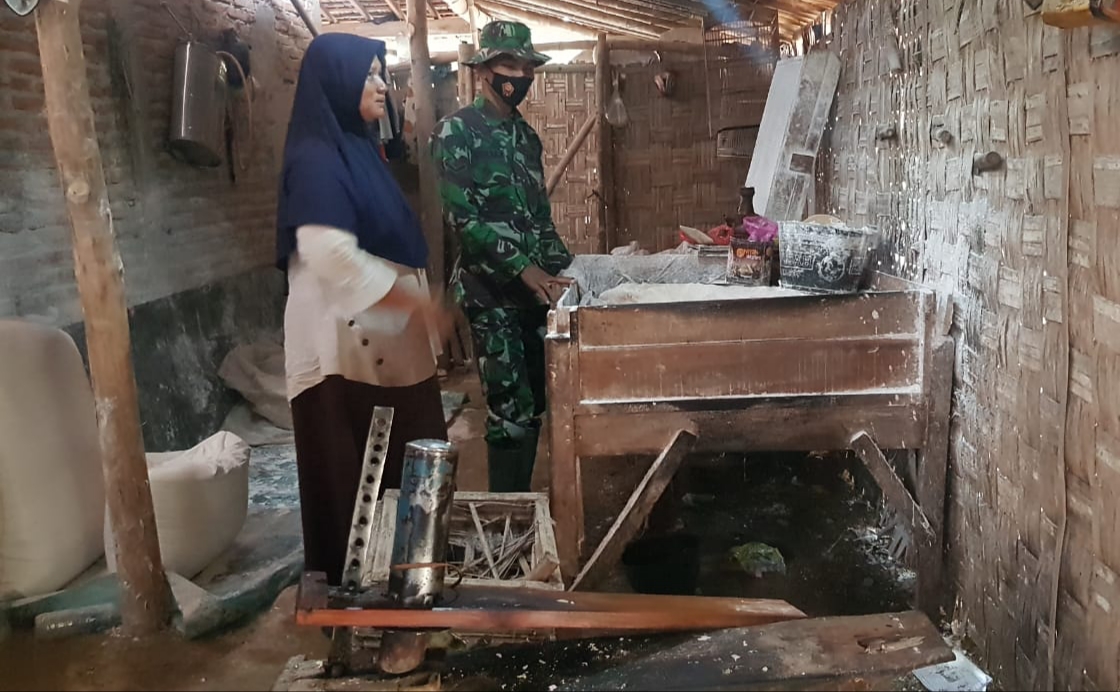 Seperti halnya yang dilakukan Serda Sukarji yang mengunjungi rumah Ibu Siti Maryati (54) salah seorang warga Dukuh Pandahan RT.02/03, Desa Tamansari, Kecamatan Jaken, yang memiliki usaha pembuatan kerupuk tempe, Sabtu (19/6/2021).
