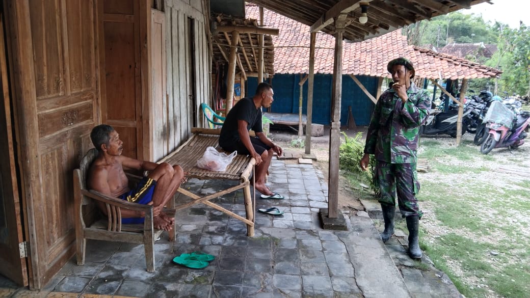 Pati – Istirahat makan siang anggota Satgas TNI Manunggal Membangun Desa (TMMD) Reguler ke-111 Kodim 0718/ Pati, di Desa Tamansari,Kecamatan Jaken, Kabupaten Pati dimanfaatkan untuk melakukan komunikasi sosial (komsos) dengan warga. Minggu (20/06/2021).