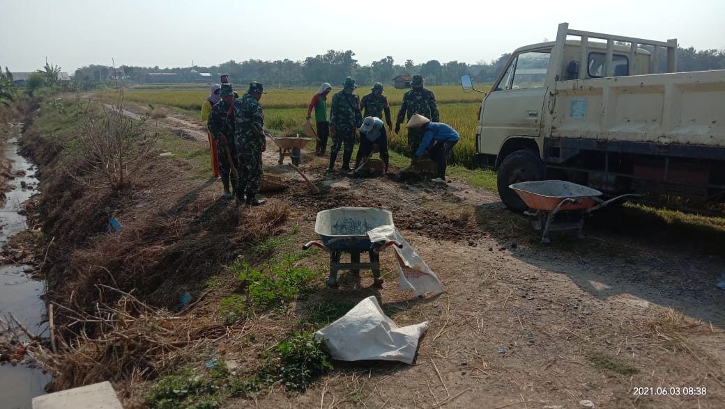 Pati – Kegiatan Pra Tentara Manunggal Membangun Desa ( TMMD ) Reguler Ke-111 Kodim 0718/Pati di Desa Tamansari, Kecamatan Jaken Kabupaten Pati terus berjalan. Senin (7/6/2021)