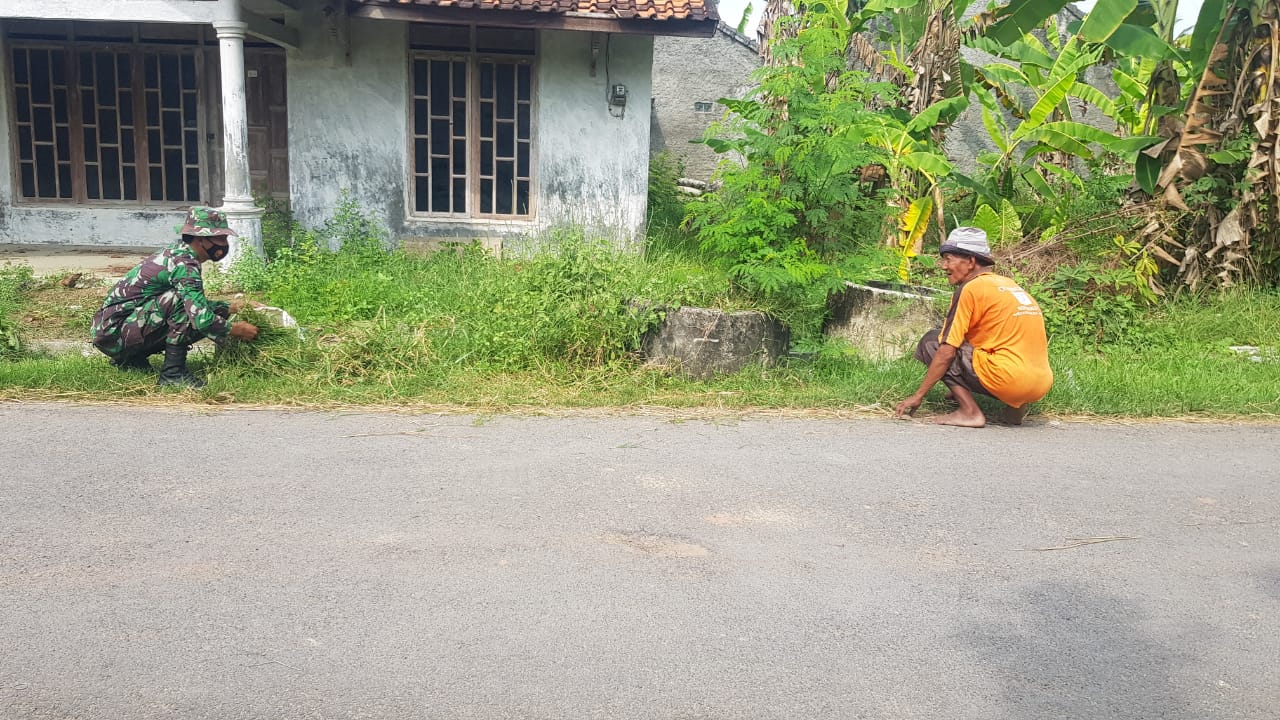 Pati – Berbagai aktivitas pekerjaan yang sedang dilaksanakan oleh satgas TMMD reg 111 Kodim Pati, mereka dengan semangat gotong-royong bersama warga tak mengenal lelah. Selepas kerja pun satgas selalu sempatkan untuk meringankan warga sekitar. Seperti yang dilakukan Serda Supriyadi yang membantu Nardi (76) warga Dukuh Kalimati, Desa Tamansari, saat sedang mencari rumput.