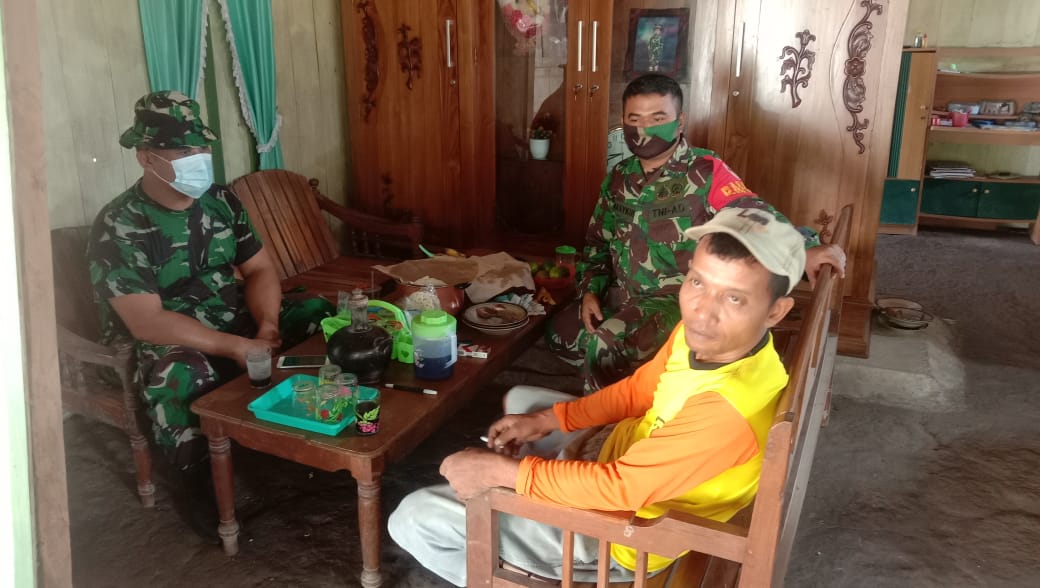 Tampak terlihat, Serda Andi dan Koptu Priyono sedang berkunjung ke rumah warga Darmo Wiyono (53), warga Dusun Kalimati, Desa Tamansari, Kecamatan Jaken.