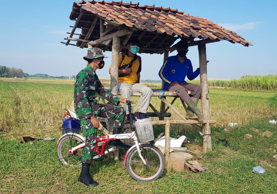 Mungkin belum banyak yang tahu sosok Kades Tamansari, pasalnya Ia selalu memakai masker dimanapun dan kapanpun. Terlihat Serda Sukarji berbincang-bincang dengan dua orang yang sedang berteduh disebuah gubuk kecil diarea persawahan tidak jauh dari lokasi pengecoran jalan,” Kamis (16/6/2021).