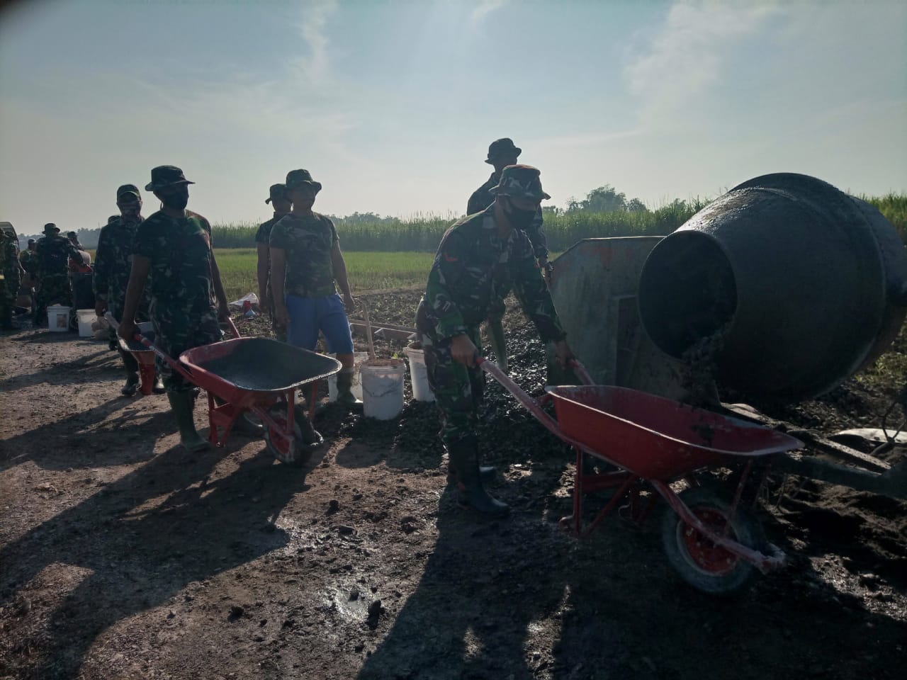 Dengan hasilnya perhari yang cukup signifikan dalam pengerjaan pengecoran. Personel Satgas TMMD bersama masyarakat desa bahu membahu mengerjakan sasaran fisik pengecoran jalan sampai dengan batas waktu yang telah ditetapkan, untuk pengecoran jalan yang menjadi salah satu sasaran fisik TMMD baru mencapai 20 persen.