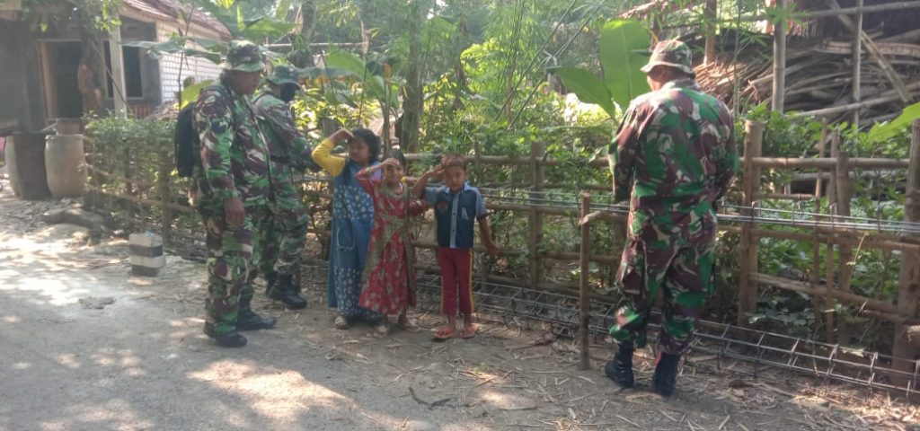 “Selamat datang di desa Tamansari pak TNI,”kata salah satu anak kepada satgas TMMD kodim Pati.