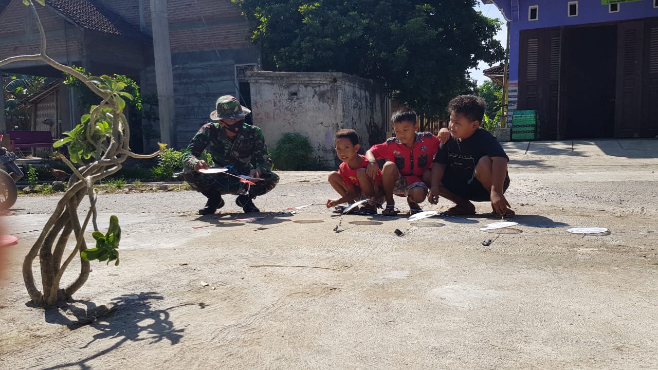 Pati – Seiring waktu berjalannya TMMD reguler ke 111 Kodim Pati, warga desa Tamansari, Kecamatan Jaken sudah sangat akrab kesehariannya dengan anggota satgas TMMD. Begitu juga dengan anak-anak didesa tersebut, itu terlihat ketika mereka bermain layang-layang dengan gembira bersama-sama.