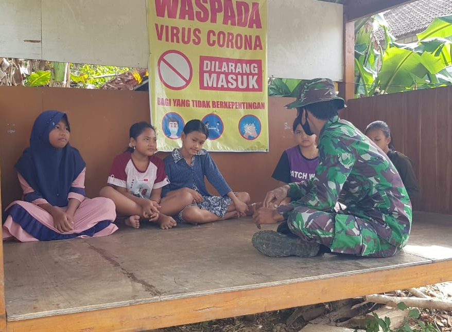 satunya yang ditunjukan Serda Agus yang bergabung bersama anak-anak dan berkumpul di pos kamling yang selama ini
