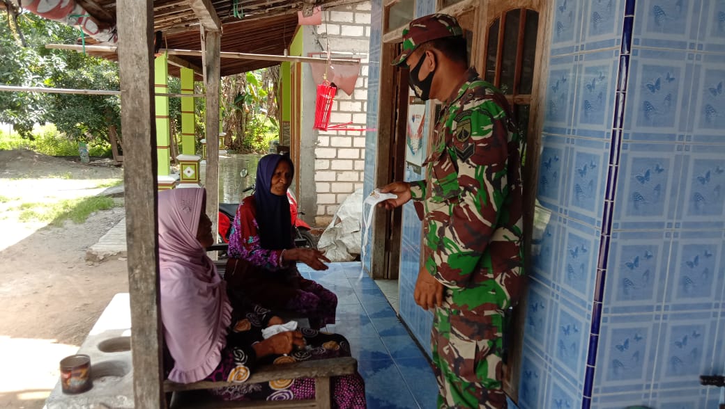 Sertu Sumarno, memberikan masker gratis kepada warga dan mengedukasi tentang protokol kesehatan 5M (Memakai masker, Mencuci tangan dengan air mengalir, Menjaga jarak, Menjauhi kerumunan dan Mengurangi mobilitas), kegiatan tesebut merupakan salah satu upaya TNI dalam membantu pemerintah untuk menekan lonjakan kasus Covid 19 di Indonesia.