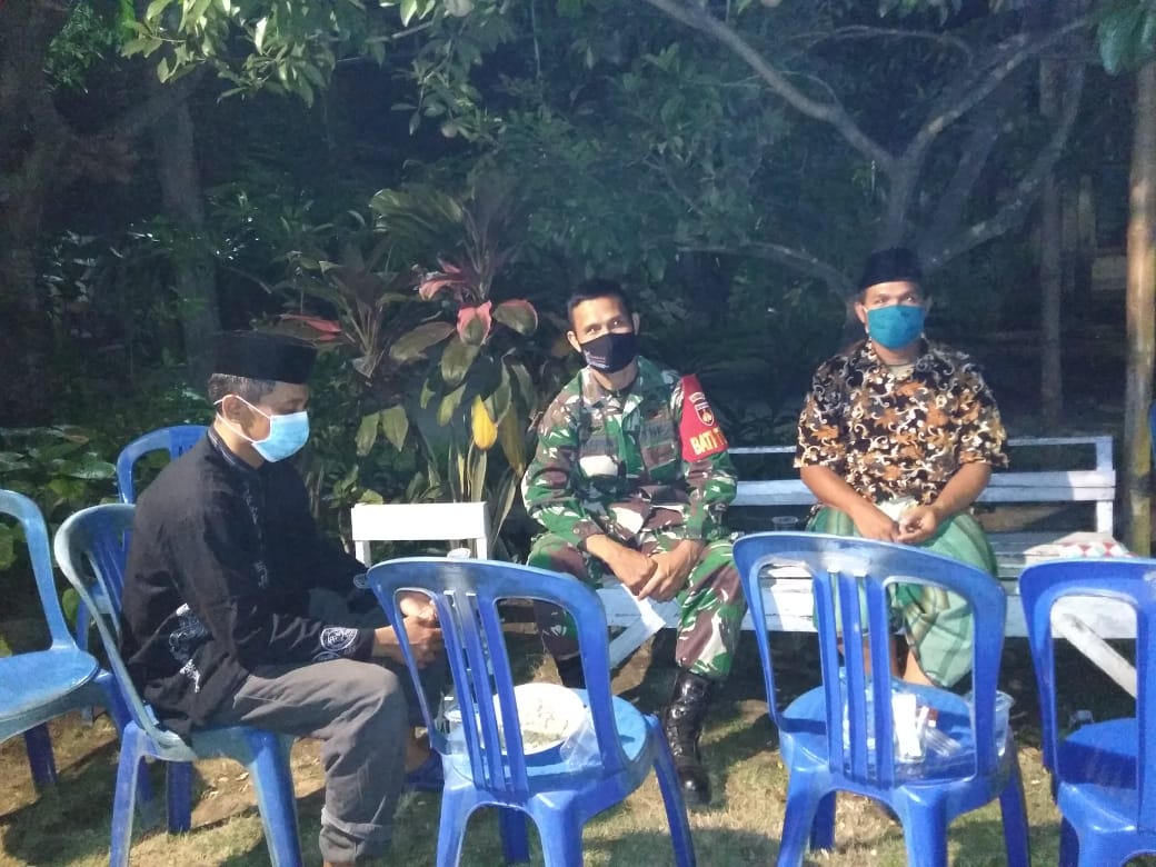 Pelda Sukarbin, salah satu anggota Satgas TMMD melaksanakan kegiatan takjiah ke rumah Almarhum Bapak Sadimin warga RT.03/02 Desa Tamansari Kecamatan Jaken, Minggu malam (13/6/2021).