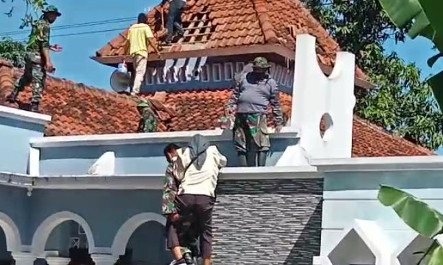Pati – Pagi itu ada pemandangan yang mengharukan namun juga membikin orang tertawa yang melihatnya. Hal itu terjadi dilokasi renovasi Masjid Nurul Iman Desa Tamansari, Kecamatan Jaken, Kabupaten Pati yang sedang dikerjakan anggota Satgas TMMD Reguler ke-111 Kodim 0718/Pati.