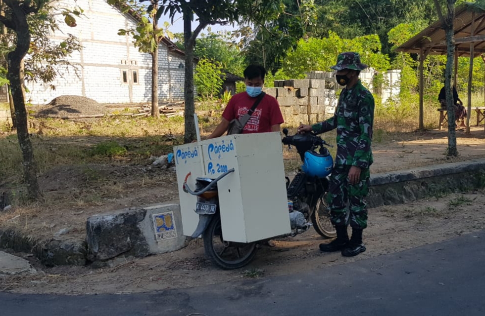 Ia penasaran melihat nama makanan/jajanan yang tertulis di bagian belakang box yang berada diatas sepeda motor Fery. Dengan menggunakan strategi komunikasi sosial, Serda Fajar menghampiri perdagangan Papeda yang biasa keliling Desa Tamansari tersebut.