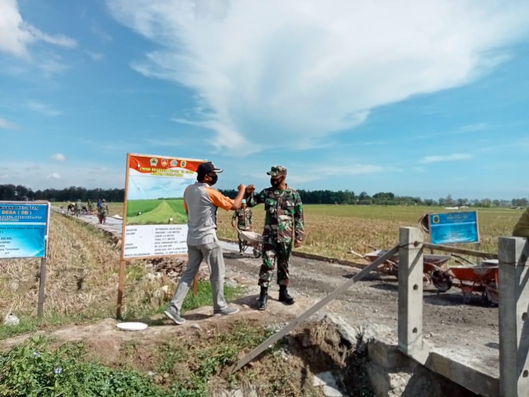 Pati-Kepala desa Tamansari kecamatan Jaken kabupaten Pati Gus Amin, ST menyampaikan optimistisnya kepada wakil komandan satgas TMMD regular 111 Kodim 0718/Pati pada saat mendampingi peninjauan di lokasi betonisasi jalan. Minggu,(27/06/2021).