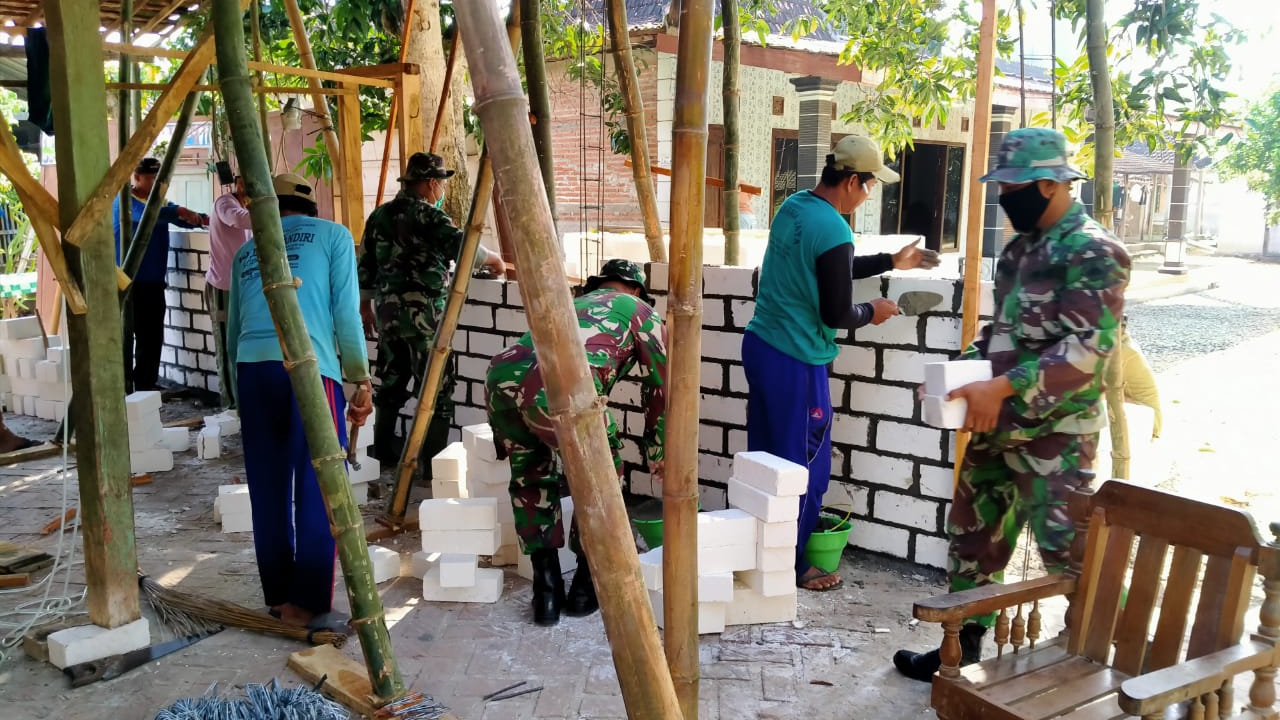 Pembagian tugas dilaksanakan pada saat apel pagi, sehingga setelah di lokasi mereka langsung bekerja sesuai bagian masing-masing. Ada yang mengangkat batako, ada yang bagian mengantar adukan bahkan ada pula yang menjadi tukang memasang dinding batako rumah. Ada satu anggota Satgas yang bisa menukang Sertu Budi Waluyo, sehingga langsung bergabung dengan tukang dari warga setempat.