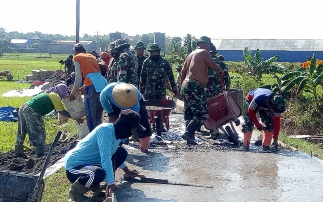 Pati-Kekompakan yang ditunjukkan Anggota Satgas TMMD Reguler 111 Kodim Pati bersama masyarakat desa Tamansari patut diteladani.