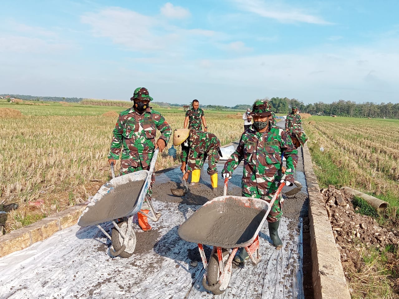 PATI – TNI Manunggal Membangun Desa (TMMD) Reguler Ke-111 Tahun 2021 Kodim 0718/Pati di Desa Tamansari terus berlangsung pengerjaanya di berbagai sektor maupun sasaran fisik dan non fisik.