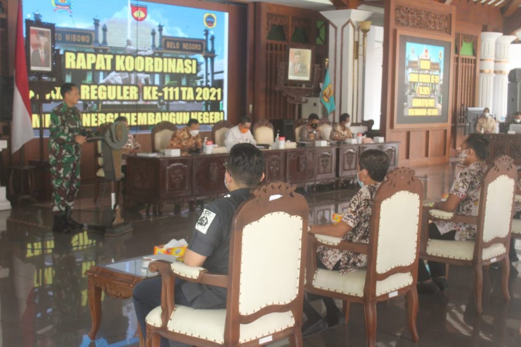 Rapat diselenggarakan di Pendopo Setda Kabupaten Pati bertujuan untuk mematangkan persiapan pelaksanaan TMMD ke-111 di wilayah Kodim 0718/Pati yang akan dilaksanakan mulai 15 Juni sampai dengan tanggal 14 Juli 2021. Lokasi TMMD ke-111 di Desa Tamansari, Kecamatan Jaken, Kabupaten Pati. Kegiatan TMMD itu mengambil tema “TMMD Sinergi Membangun Negeri”.
