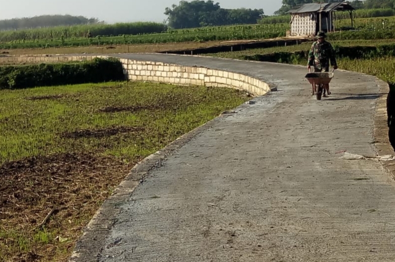 Hal ini terbukti, pelan tapi pasti pengecoran jalan pertanian sepanjang 1.450 meter yang menjadi sasaran fisik TMMD di Desa Tamansari ini sudah mencapai 45 persen dari target keseluruhan.