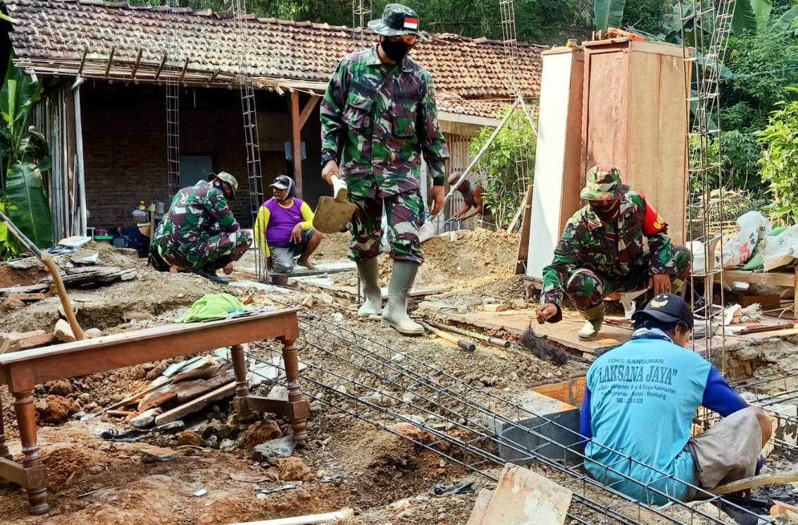 Pati-Hingga siang menjelang, tidak hentinya anggota satgas TMMD reguler 111 Kodim Pati bersama masyarakat terus bekerja. Salah satu rehab rumah di program tersebut adalah dirumah Asmuri (72) warga RT. 01/01 yang pekejaan sehari-hari adalah seorang petani.