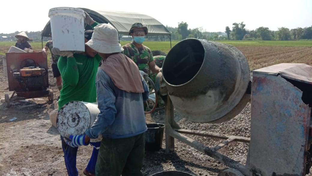 Pati – Tidak pernah putus asa dalam melaksanakan tugas pengecoran jalan bersama TMMD Reguler ke-111 Kodim 0718/Pati, bersama masyarakat Desa Tamansari, Kecamatan Jaken, Selasa (22/06/2021)