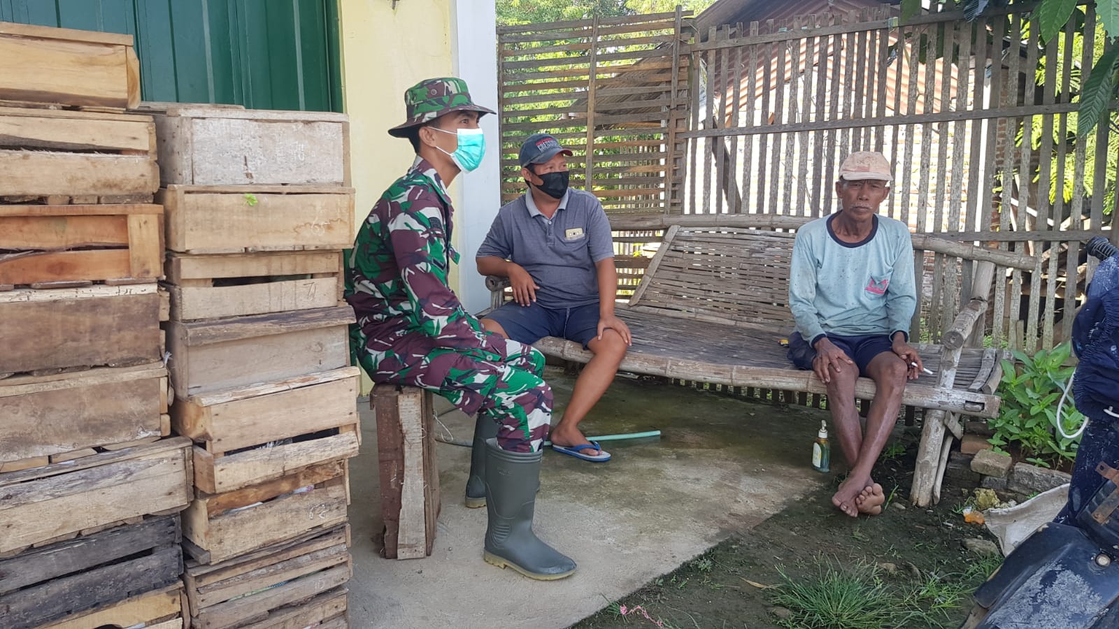 Memanfaatkan waktu baik saat selepas bekerja maupun disela istirahatnya saat Serda Arifin sebelum bekerja ia bersama warga sambil berbincang-bincang bersenda gurau mendengarkan kisah menarik pengalaman warga selama mengikuti kegiatan TMMD.