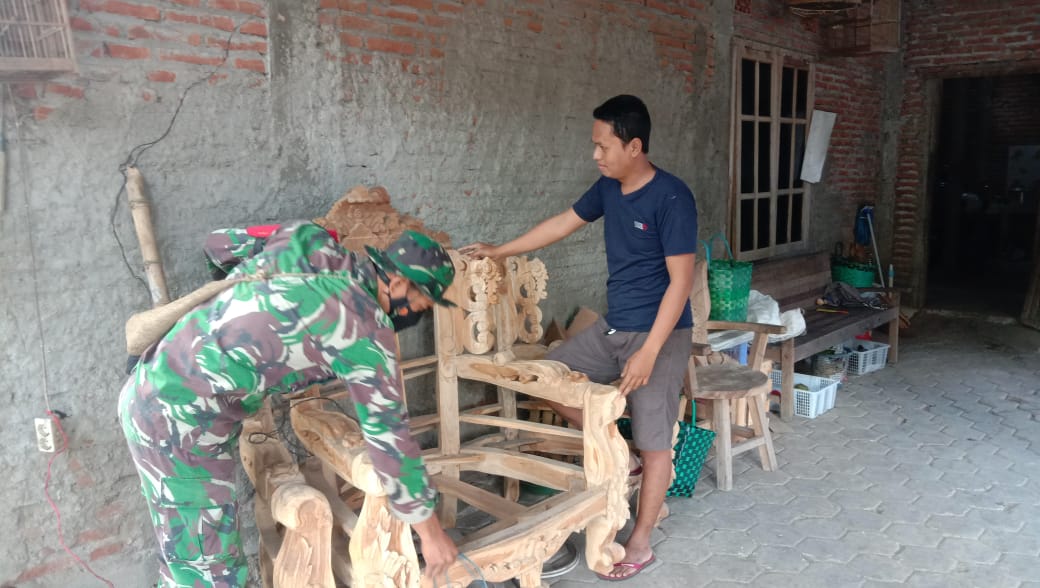 Setelah berlelah-lelah sepanjang hari, waktu istirahat yang ada, dimanfaatkan oleh anggota Satgas TMMD untuk anjangsana ke rumah warga. Mustofa (36) pengrajin dan pengusaha ukiran Desa Tamansari RT 04/01. Banyak kursi maupun meja ukiran yang dibuat dan dipasarkan atau pesanan warga dan dijual ke desa sekitar.