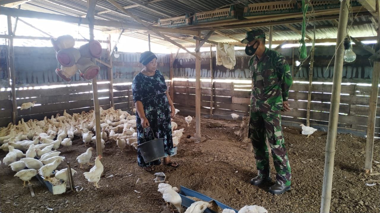 Pati – Anggota satgas TNI Manunggal Membangun Desa (TMMD) Reguler ke 111Kodim 0718/Pati, Serma Suyatno, melaksanakan kegiatan komunikasi sosial di kandang ayam Ibu Warti (51), di Dusun Pandaan Rt.03/Rw.01, Desa Tamansari, Kecamatan Jaken, Kabupaten Pati, yang kesehariannya bekerja sebagai peternak ayam pedaging, dengan jumlah sekitar 300 ekor ayam, Senin (28/06/2021).