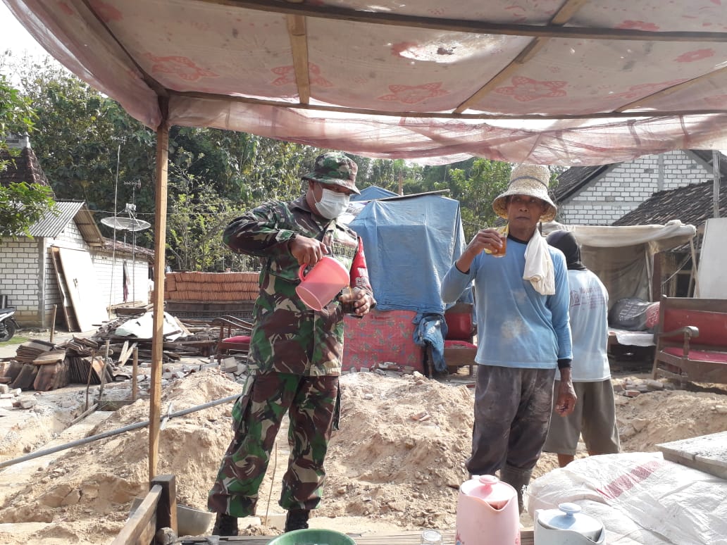 Itu terlihat saat anggota Satgas TMMD bersama dengan warga sedang istirahat selesai mengerjakan perehaban Rumah Tidak Layak Huni (RTLH) milik Safari (60) di Desa Tamansari RT. 01 RW. 02, Kecamatan Jaken, Kabupaten Pati. (16/06/2021)