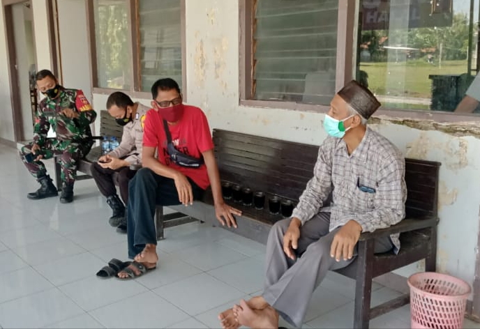 Seperti terlihat kali ini, Kopral Satu Pujiono anggota Satgas TMMD Reguler Kodim Pati sedang berada didepan Kantor Balai Pengobatan yang tidak jauh dari desa tempat di gelarnya kegiatan TMMD, untuk memberikan edukasi dan himbauan kepada warga yang berada di lingkungan kantor tersebut agar tidak melalaikan protokol kesehatan.