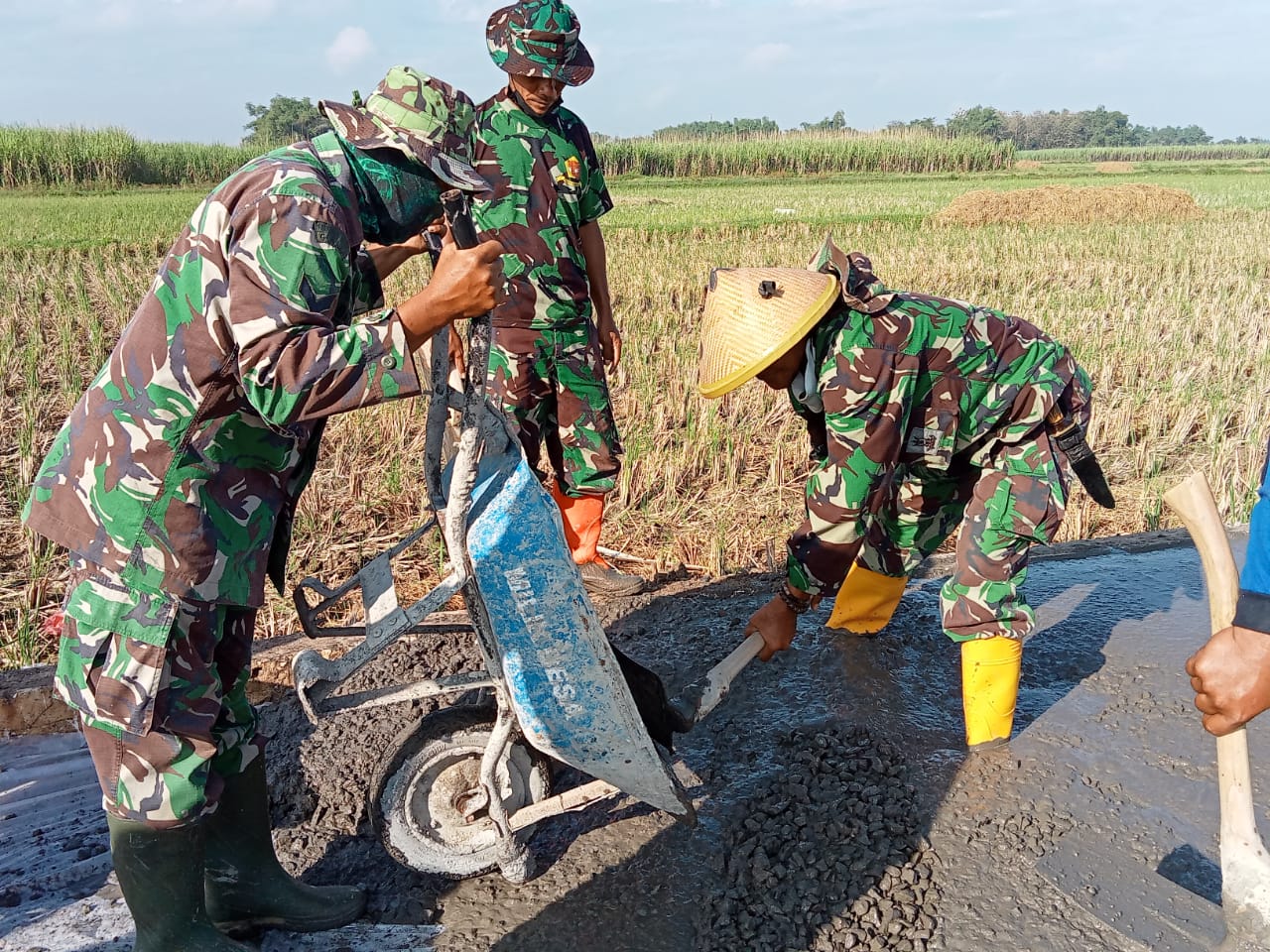 Pati – Satgas TMMD Reguler 111 Kodim 0718/Pati memfokuskan pekerjaan pengecoran jalan di Desa Tamansari, merupakan jalan sawah penghubung Desa Tamansari Kecamatan Jaken tembus dengan Desa Sumber Arum , Sabtu (26/06/2021).