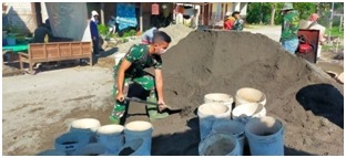 Mau disadari atau tidak dengan kita bekerja seperti Menyerok pasir ataupun mengangkat material Dengan begitu dapat membentuk otot tangan menjadi kuat dan badan menjadi kekar”tutur Sertu Puryono”. Itulah salah satu keuntungan yang di peroleh dengan menjadi anggota satgas TMMD Memang dengan kita bekerja keras dan banyaknya tenaga yang terkuras Perlu juga tambahan vitamin serta gizi ini untuk menjaga agar badan selalu vit dan siap melaksanakan pekerjaan berikutnya.