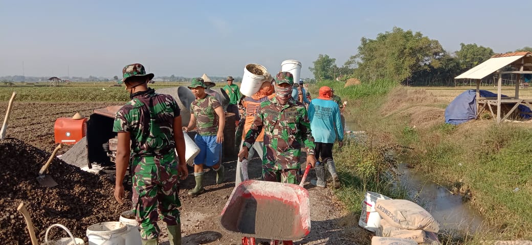 Pati – Sertu Suprapto anggota Satgas TMMD Reguler ke-111 Kodim Pati yang kemarin berada lokasi renovasi Rumah Tidak Layak Huni (RTLH) kini tiba-tiba muncul di lokasi pengecoran jalan sasaran fisik TMMD di Desa Tamansari, Kecamatan Jaken, Kabupaten Pati, Jawa tengah.