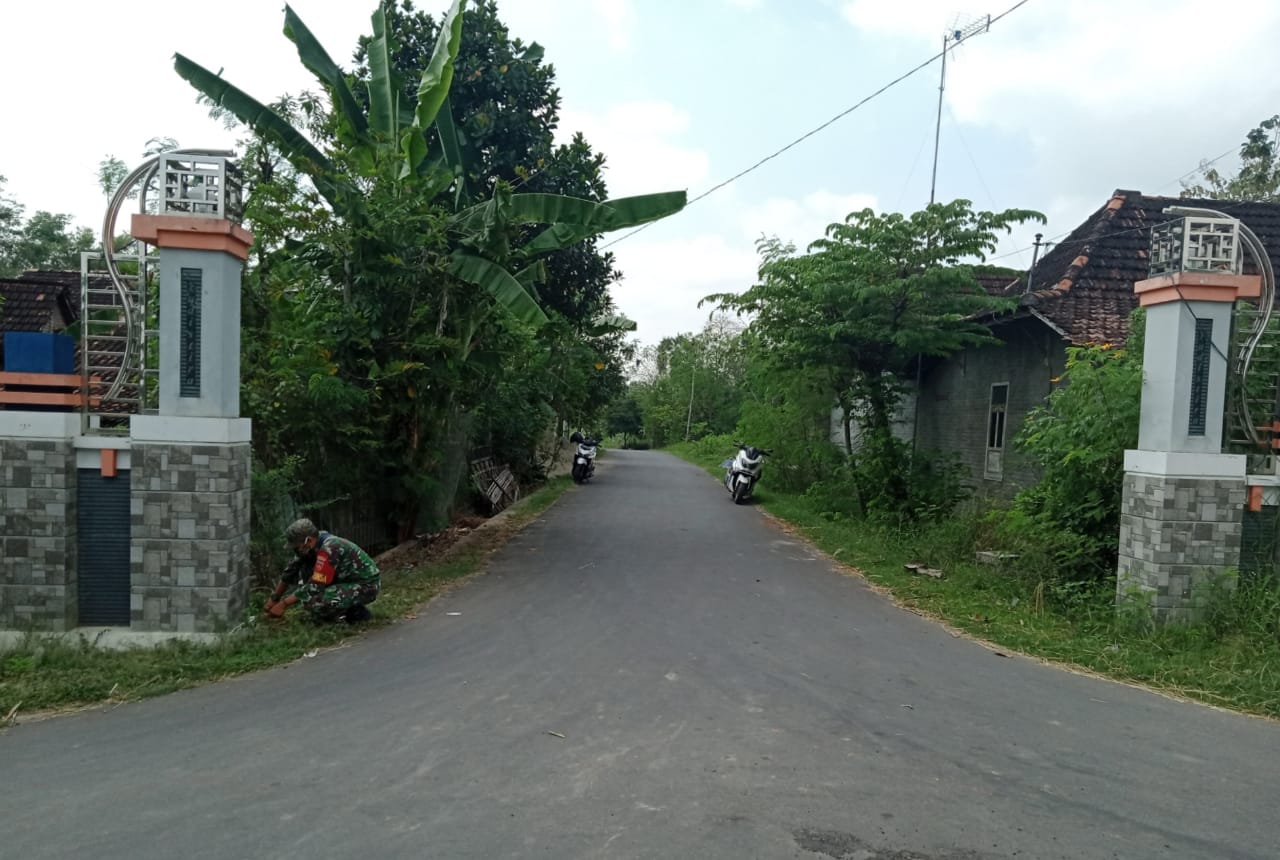 Pati – Sertu M. Jumroni Babinsa Tamansari setiap pagi selalu patroli keliling kampung. Hal ini dilakukan untuk mengetahui kondisi dan kesiapan Desa saat TMMD Reguler ke-111 benar-benar sudah dibuka. Pagi ini Babinsa mengecek kondisi lampu Gapura Desa Tamansari yang sudah beberapa hari terlihat mati, Senin (07/06/2021).